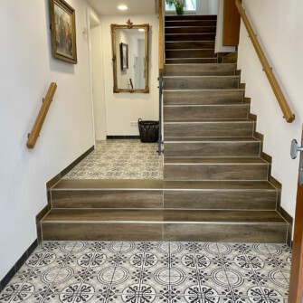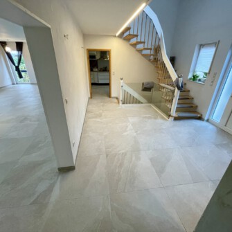 Innentreppen können mit Feinsteinzeug optimal verkleidet werden, was zu einem ganzheitlichen Gestaltungskonzept mit Boden und Wänden beitragen kann. Aufgrund seiner Robustheit und Strapazierfähigkeit ist Feinsteinzeug eine ideale Wahl für Treppen. Die Fliesen können passend zur restlichen Raumgestaltung ausgewählt werden.